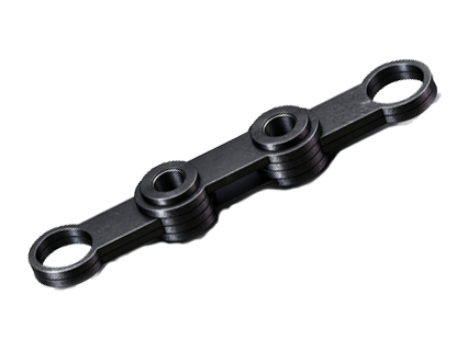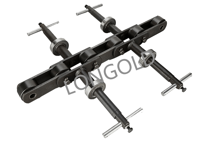 當然,單靠鏈條是無法對水體的雜質進行清除的,污水處理鏈在使用時還需要搭配刮泥擋板使用,而這兩種規格的污水處理鏈都帶有SF4附件,其附件上的四個通孔便是用于安裝刮泥擋板。