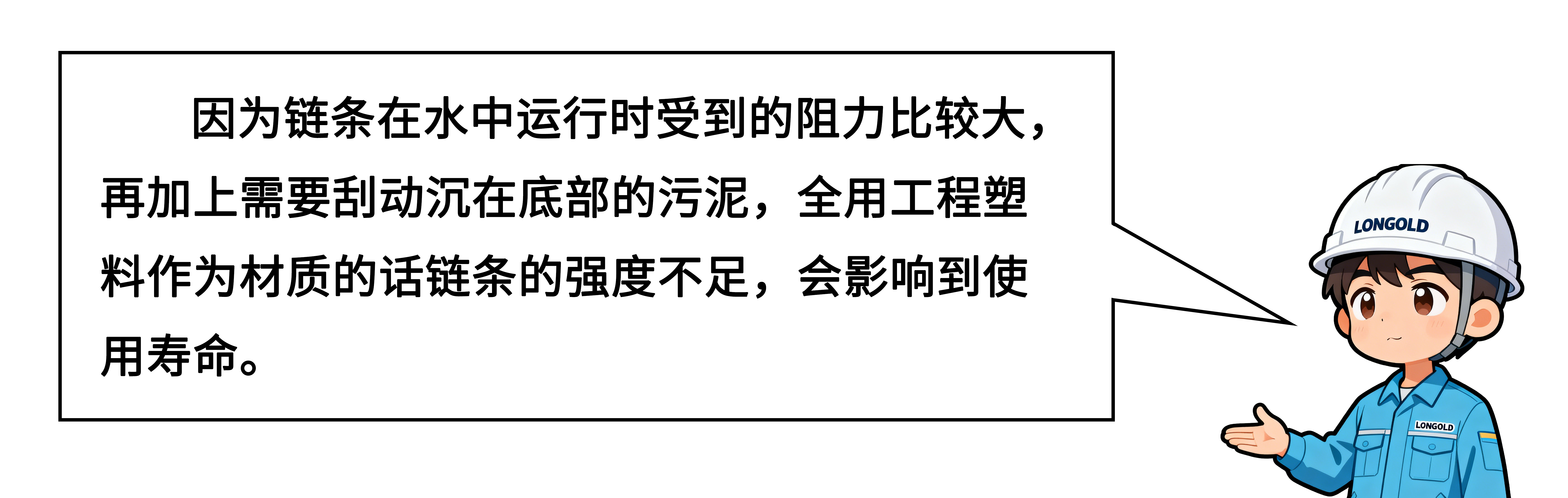 由于需要與污水直接接觸,所以這兩款規格的污水處理鏈除銷軸外,其它部件均采用工程塑料材質